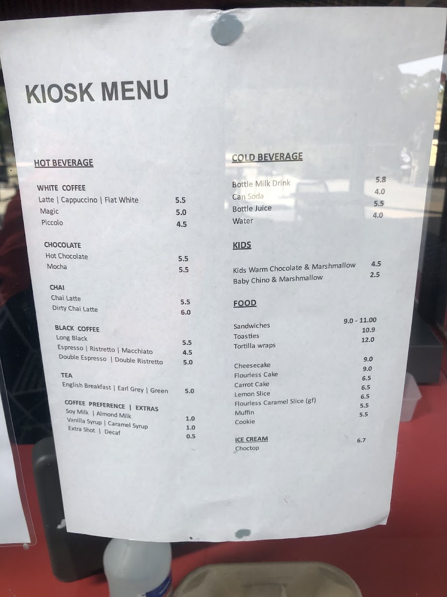 Cranbourne Gardens Kiosk Menu